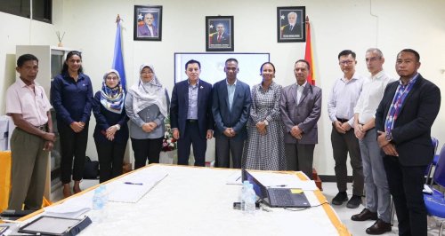 Presidente Autoridade Nacional de Comunicações (ANC) Sr. Flávio Cardoso Neves hamutuk ho Administradora Finansas Sra. Georgina Emilia da Silva Garcia simu ekipa delegasaun husi 𝘔𝘢𝘭𝘢𝘺𝘴𝘪𝘢𝘯 𝘊𝘰𝘮𝘮𝘶𝘯𝘪𝘤𝘢𝘵𝘪𝘰𝘯𝘴 𝘢𝘯𝘥 𝘔𝘶𝘭𝘵𝘪𝘮𝘦𝘥𝘪𝘢 𝘊𝘰𝘮𝘮𝘪𝘴𝘴𝘪𝘰𝘯 (𝘔𝘊𝘔𝘊), iha Salaun Enkontru ANC, Caicoli.