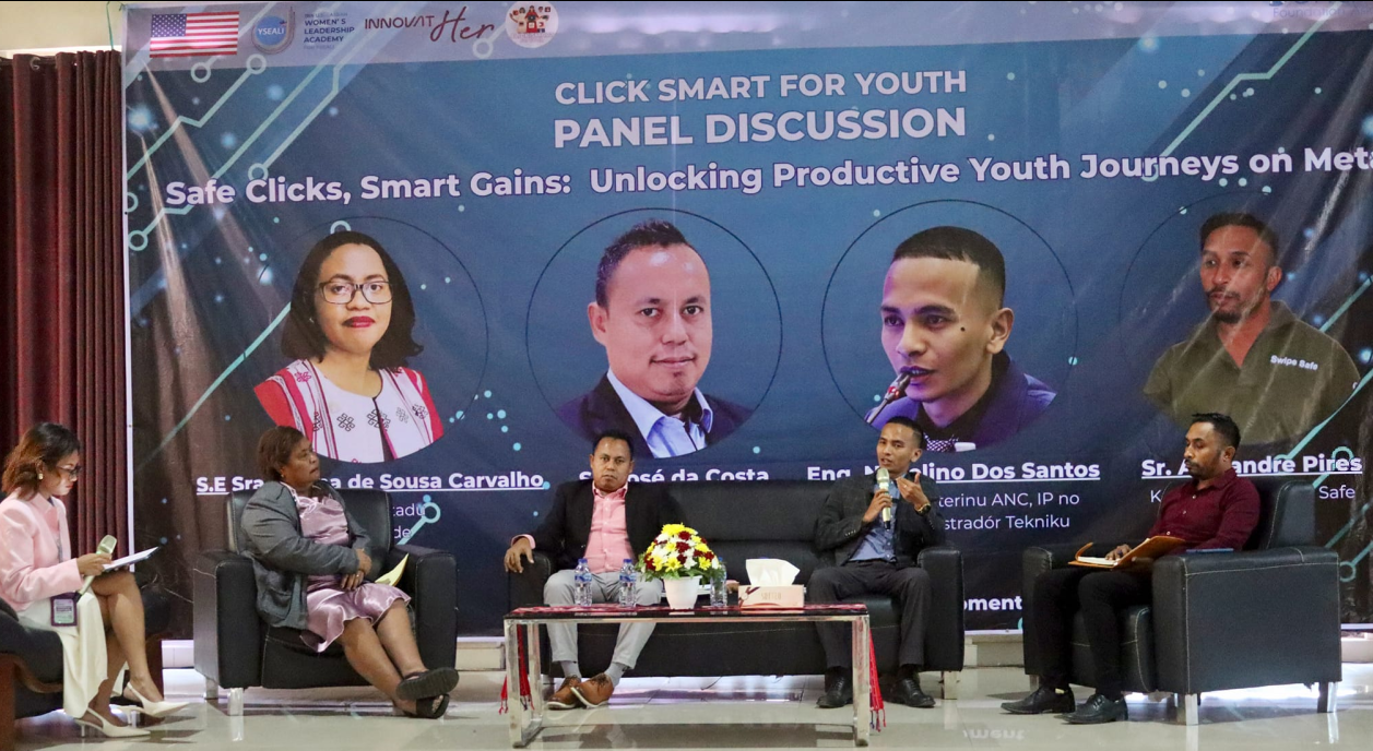 Dili, 9 Dezembru 2025 – Prezidente interinu Autoridade Nasionál Komunikasaun (ANC IP.) no atual Administradór Tekniku Sr. Novelino Dos Santos partisipa iha Diskusaun Painél liu husi Programa Klik Smart for youth iha Salaun IOB Fomentu Dili.